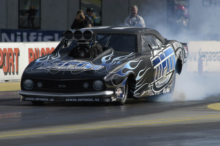 Tierp (Sweden), August 26, 2013 - For MPM-driver David Vegter the Scandinavian Internationals at Tierp Arena was already over before it could really begin. At the first day of qualifying the Dutchman clocked 6.17 seconds and was the number five qualifier out of a 32 car field. But in the run the engine of the '67 Camaro suffered serious damage and that was so bad, it was beyond repair at the track. So that made an early end to Vegter Pro Mod Racing's Swedish race after one day only. Despite this major setback, Vegter only lost one place in the FIA European Pro Modified Championship and with one race to go, the MPM-driver is now the number five in this extremely competitive series.